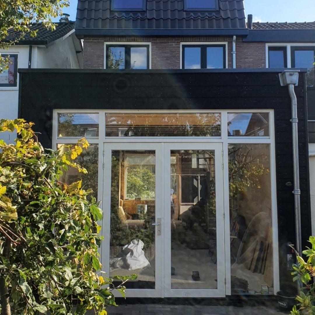 - Bouwen van een uitbouw aan de achterzijde met grote glasgevel